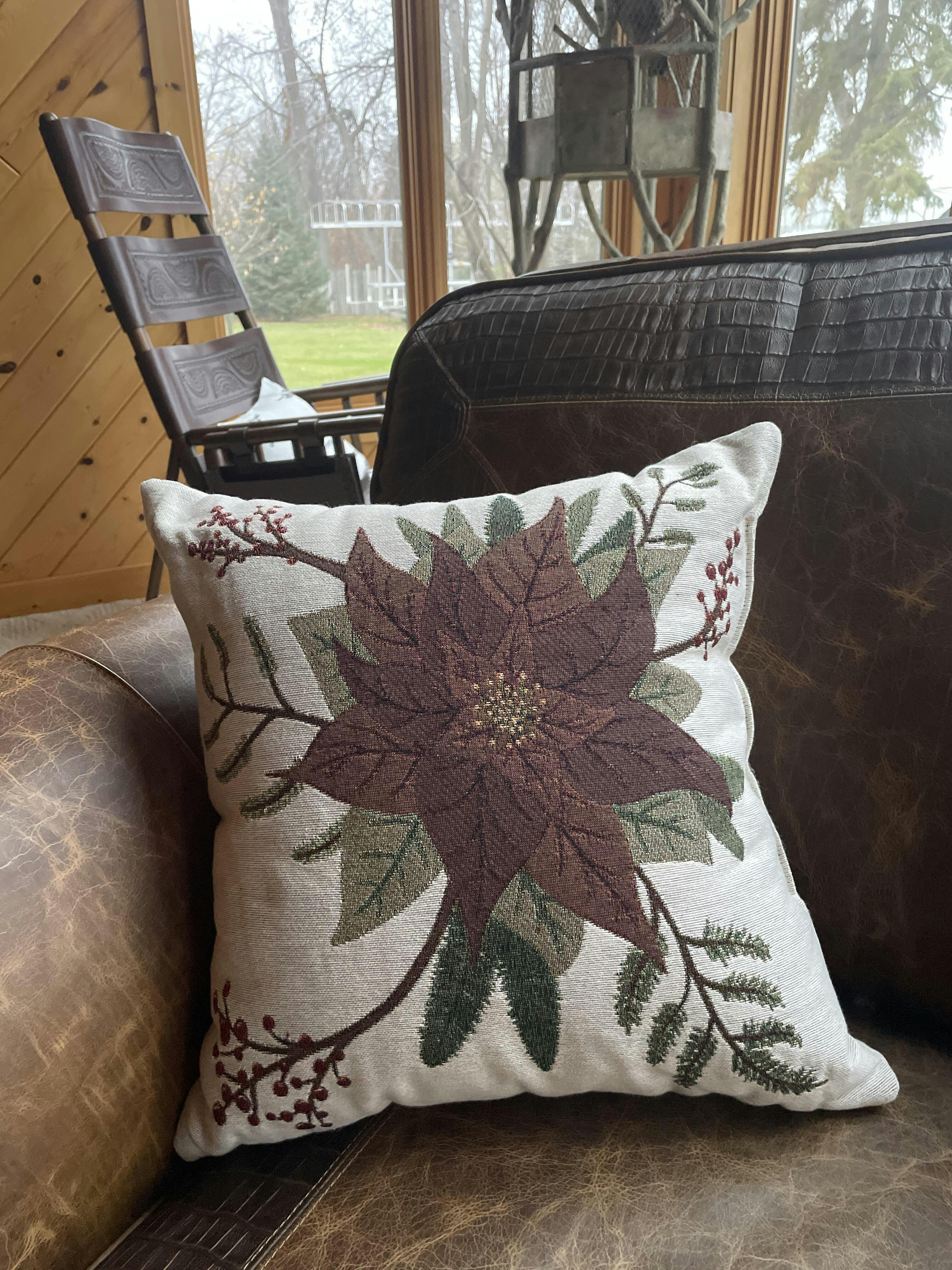 Poinsettia Woven Pillow